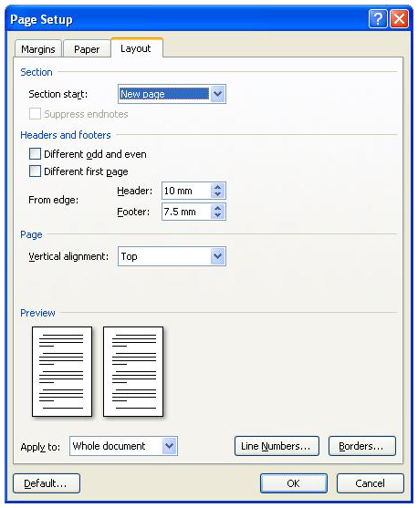Finally on the ‘Layout’ tab set the header at 10mm and the footer at 7.5mm and select ‘top’ for the vertical alignment. SEE IT