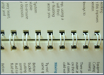 Very similar to wiro binding, but using instead a plastic spiral coil. This method is often used in the binding of young children’s story books where durability is a requirement and safety concern of using a metal wire is avoided.